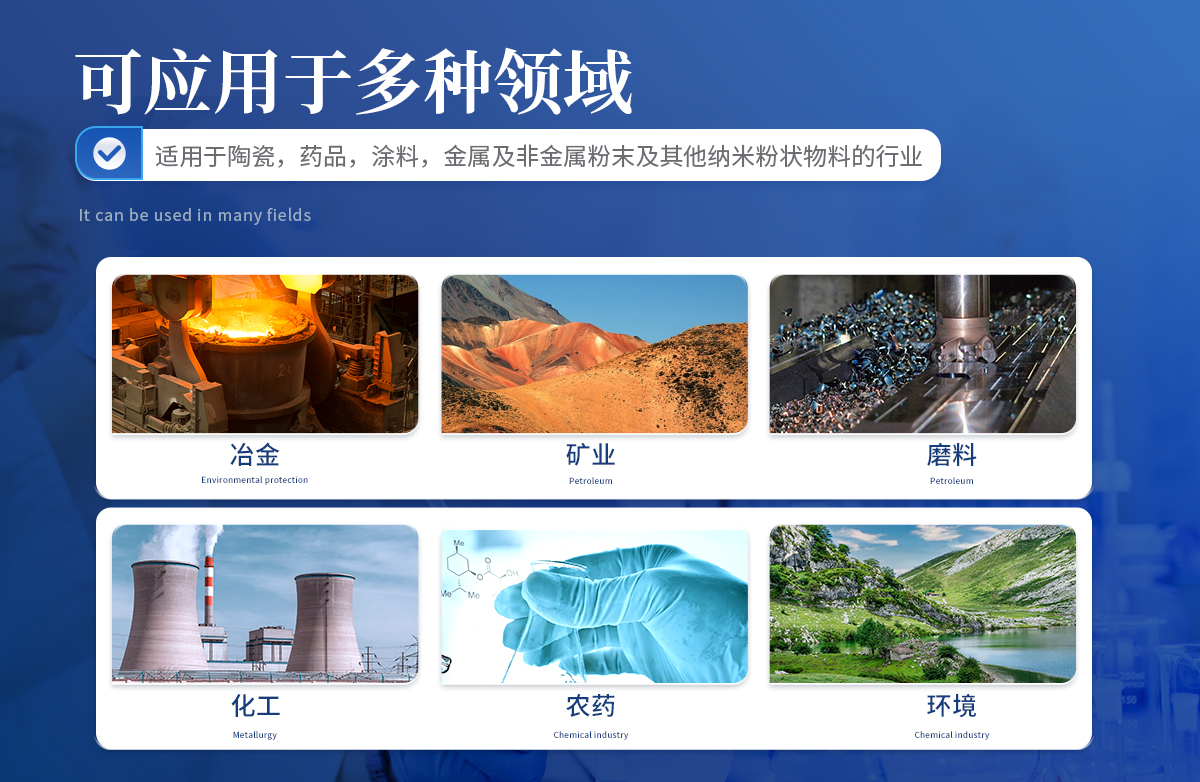 YT-QJLS-2000廣泛應(yīng)用于水泥、陶瓷、藥品、乳液、涂料、染料、顏料、填料、化工產(chǎn)品、催化劑、鉆井泥漿、磨料、潤滑劑、煤粉、泥砂、粉塵、細(xì)胞、細(xì)菌、食品、添加劑、農(nóng)藥、炸藥、石墨、感光材料、燃料、墨汁、金屬與非金屬粉末、碳酸鈣、高嶺土、水煤漿及其他粉狀物料。