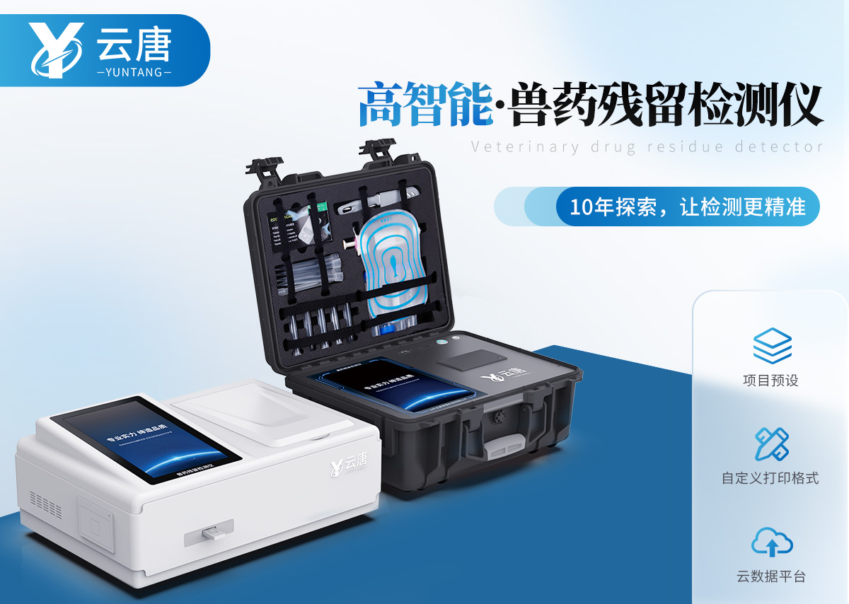 山東云唐智能科技有限公司生產(chǎn)的獸藥殘留檢測儀可快速檢測瘦肉精激素類食品安全項目,包含鹽酸克倫特羅、沙丁胺醇、萊克多巴胺、己烯雌酚,獸藥殘留、抗生素類殘留、真菌毒素類殘留、動物疫病類等檢測。