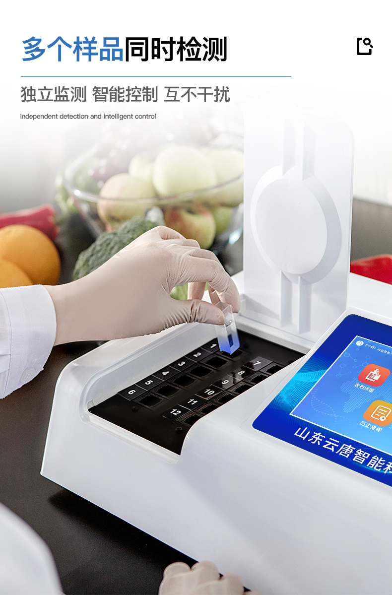 安卓智能操作系統(tǒng),采用更加**和人性化操作,儀器具有網(wǎng)線連接、wifi聯(lián)網(wǎng)上傳、GPRS無線遠(yuǎn)傳功能,快速上傳數(shù)據(jù)。智能化程度高,儀器具有自檢功能:具有開機(jī)自檢和調(diào)零功能,具有自動(dòng)檢測(cè)重復(fù)性功能。檢測(cè)通道:≥12個(gè)檢測(cè)通道,可以同時(shí)測(cè)試多個(gè)樣品,每個(gè)樣品由程序控制分別獨(dú)立工作,不會(huì)互相干擾。顯示方式:≥8英寸液晶觸摸屏顯示,人性化中文操作界面,讀數(shù)直觀、簡單。配備新一代嵌入式熱敏打印機(jī),可選擇手動(dòng)打印或者自動(dòng)打印,檢測(cè)完成可自動(dòng)打印檢測(cè)報(bào)告和二維碼。光源采用進(jìn)口超高亮發(fā)光二極管,高精度、穩(wěn)定性強(qiáng)、光源可控、可以關(guān)掉不使用的光源,功耗更低。采用USB2.0接口設(shè)計(jì),方便數(shù)據(jù)的存貯和移動(dòng),并可隨時(shí)與計(jì)算機(jī)直接相連,并且可用計(jì)算機(jī)控制儀器。實(shí)現(xiàn)數(shù)據(jù)查詢、瀏覽、分析、統(tǒng)計(jì)、打印等。儀器帶有監(jiān)管平臺(tái)。數(shù)據(jù)可局域網(wǎng)和互聯(lián)網(wǎng)數(shù)據(jù)上傳,檢測(cè)結(jié)果直接傳至食品安全監(jiān)管平臺(tái)。進(jìn)行區(qū)域食品安全監(jiān)管及大數(shù)據(jù)分析處理,檢測(cè)區(qū)域食品安全長短期動(dòng)態(tài),達(dá)到食品安全問題預(yù)估、預(yù)警一體化便攜式快檢設(shè)備,滿足現(xiàn)場及流動(dòng)檢測(cè)使用需求,能夠在同一軟件下實(shí)現(xiàn)所有檢測(cè)項(xiàng)目的檢測(cè),并可通過同一窗口直觀顯示檢測(cè)結(jié)果。儀器具有多品類多種類樣品菜單庫,可靈活選擇檢測(cè)樣品,不同的檢測(cè)通道可同時(shí)檢測(cè)不同的樣品項(xiàng)目。也可在儀器上直接編輯錄入樣品名稱、檢測(cè)指標(biāo)、送檢單位等信息并保存進(jìn)樣品數(shù)據(jù)庫。樣品處理簡單省力,整體操作快速、安全、便捷。儀器具有自身保護(hù)功能,可設(shè)置用戶名及密碼,防止非工作人員操作等。高靈敏度,高檢測(cè)精度,高重復(fù)性精度,掃描式高精度光學(xué)傳感器。內(nèi)置強(qiáng)大的數(shù)據(jù)庫,可在儀器上直接選擇樣品名稱、檢測(cè)指標(biāo)、送檢單位等信息,也可在儀器上直接編輯錄入樣品名稱、檢測(cè)指標(biāo)、送檢單位等信息并保存進(jìn)樣品數(shù)據(jù)庫。儀器具有重新校準(zhǔn)、鎖定、恢復(fù)出廠設(shè)置功能。支持U盤存儲(chǔ)。 結(jié)果判定線可修改,對(duì)照值標(biāo)定值可保存,斷電不丟失數(shù)據(jù)。