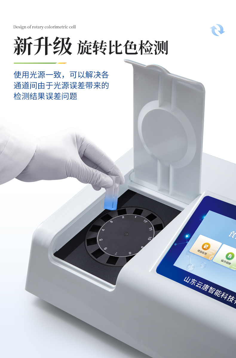 4、檢測通道:≥12通道;采用精密旋轉(zhuǎn)比色池設(shè)計(jì),使用同芯片同光源校準(zhǔn)精度,解決不同光源之間的誤差值,更加準(zhǔn)確**。