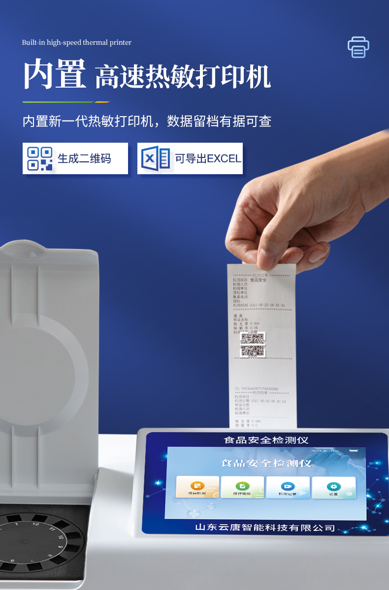 8.4、打印系統(tǒng):內(nèi)置全新打印機(jī),可以打印:項(xiàng)目名稱,二維碼,抽樣信息、檢測信息,受檢信息、復(fù)核信息、抽樣日期、檢測日期等信息的打印。
