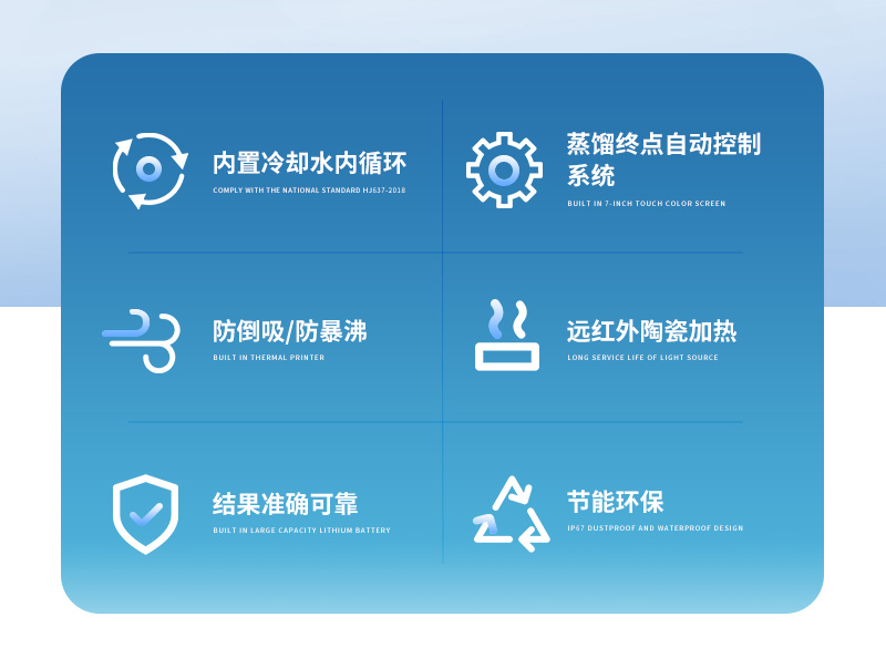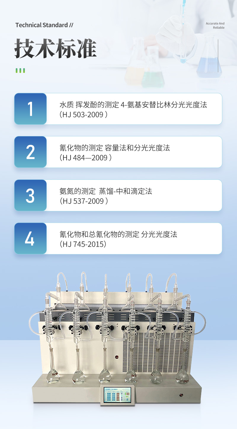 該儀器實驗了控溫、自動防倒吸、加熱均勻、防止暴沸、智能終點控制等功能。使用方便,節(jié)能環(huán)保。經(jīng)過實驗室蒸餾回收率比對驗證,結(jié)果準(zhǔn)確,回收率達95%以上。該儀器可廣泛適用于環(huán)保、疾控、水產(chǎn)、供排水、高校、科研院所、廠礦企業(yè)等各類化學(xué)實驗室需要蒸餾處理的場所,如揮發(fā)酚、氨氮、凱氏氮油中水分等項目的蒸餾處理。