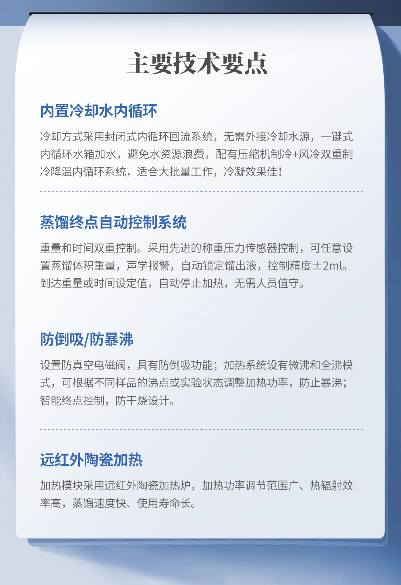 蒸餾儀是根據(jù)實驗室蒸餾預(yù)處理操作規(guī)程,集恒溫加熱、蒸餾終點自動控制、冷卻水循環(huán)于一體的新型智能蒸餾處理裝置。2025-11-07