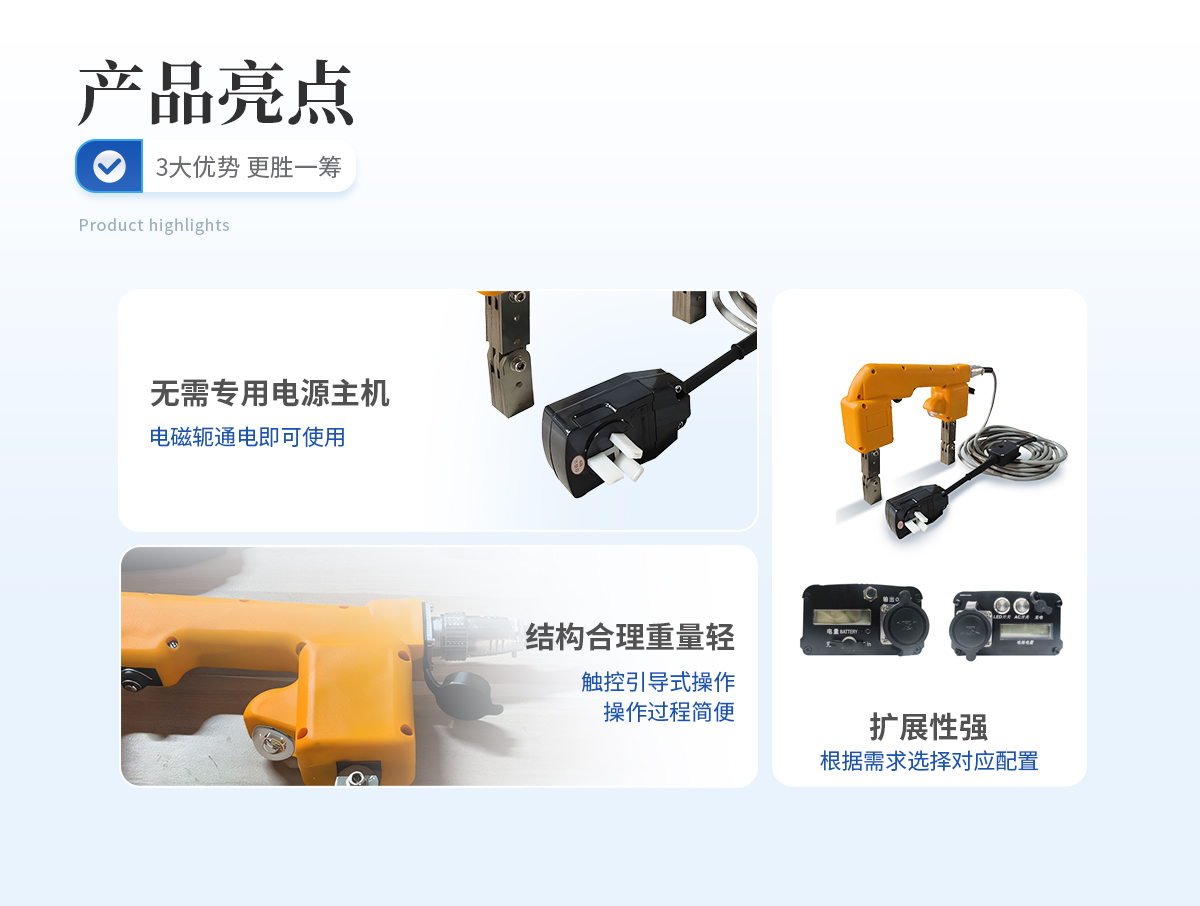 1、 無(wú)需專用電源主機(jī),電磁軛通電即可使用;2、 體積小巧,重量輕;3、 開(kāi)模制作,結(jié)構(gòu)合理,手感舒適;4、 磁軛標(biāo)配白光燈,可選熒光燈(不額外加費(fèi)用);5、 配專用儀器箱;6、 擴(kuò)展性強(qiáng),可根據(jù)需要增配對(duì)應(yīng)的專用電池包,通過(guò)專用電源來(lái)實(shí)現(xiàn)交流、直流磁化功能??蓾M足不方便拖電源線的場(chǎng)所使用。
