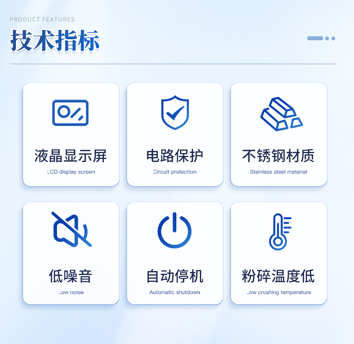 ★21、具有溫控功能,可設(shè)定溫度自動停機(jī),調(diào)節(jié)轉(zhuǎn)速,進(jìn)料速度,粉碎時間