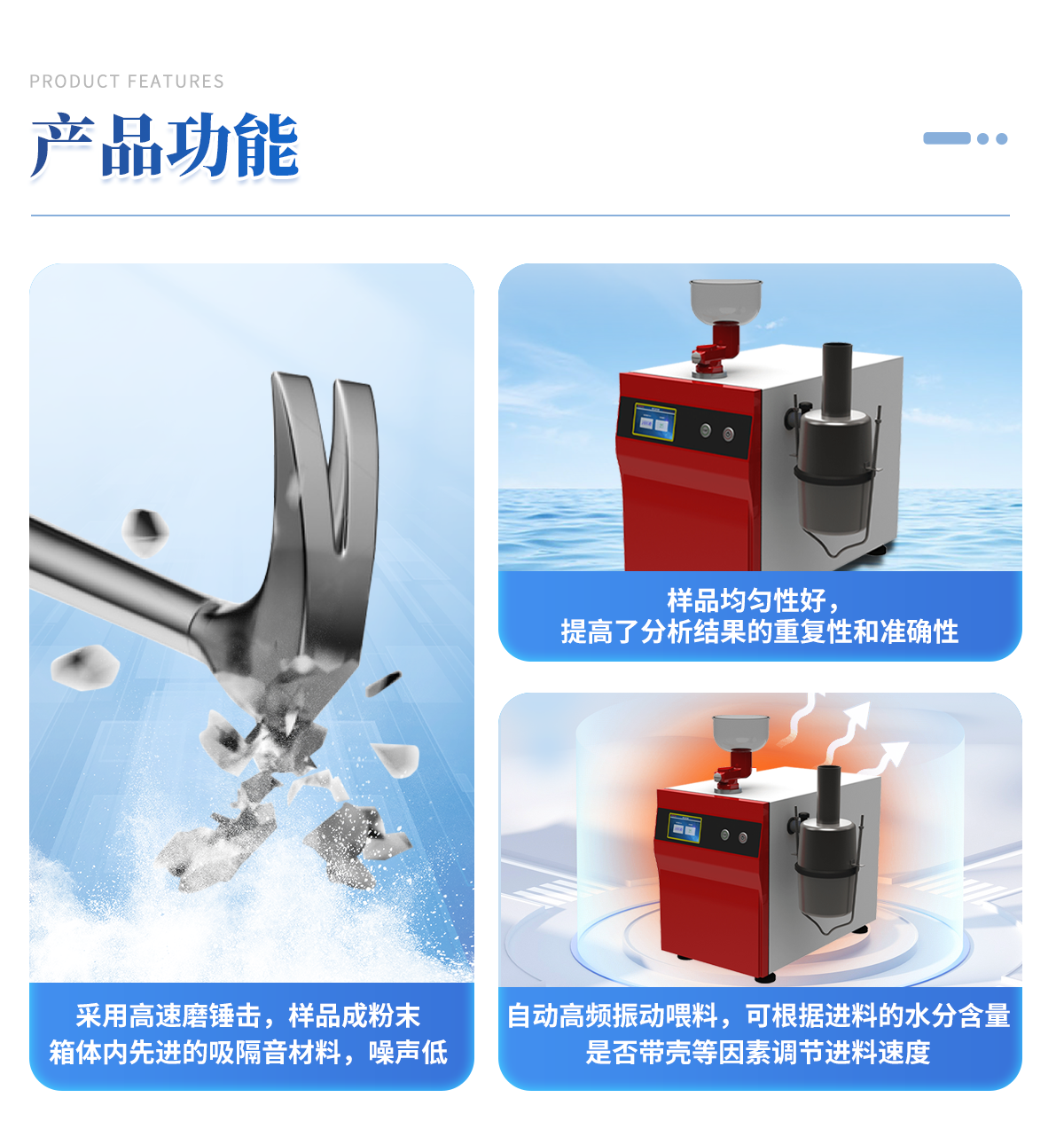 ·樣品粉碎時具有高速氣流自動清理磨膛功能,不需要在樣品粉碎時停止進(jìn)行人工清理