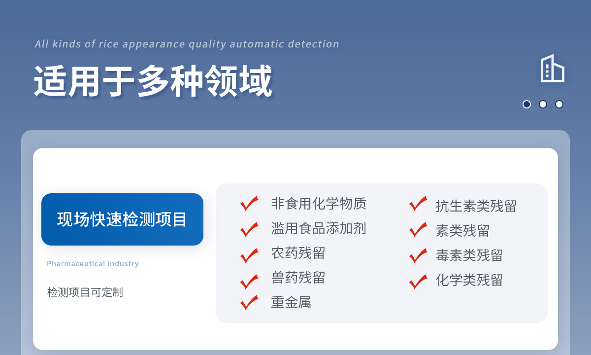 5、一體化便攜式快檢設(shè)備,滿足現(xiàn)場及流動檢測使用需求,能夠在同一軟件下實現(xiàn)所有檢測項目的檢測,并可通過同一窗口直觀顯示檢測結(jié)果。