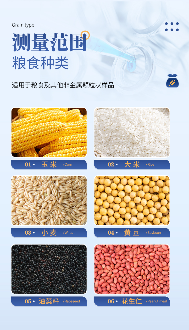 | 容重?fù)Q算:獨(dú)特的專利容重取樣裝置在**測(cè)量小麥的同時(shí),可以直接換算出小麥容重指標(biāo)。 | 測(cè)量范圍:可測(cè)量谷類、玉米、東北玉米、大麥、小麥、白小麥、大米、豆粕、花生仁、菜粕、高粱、黑芝麻、棉籽、棉粕、秈谷、大豆、油菜籽、飼料、蔬菜種子等非金屬顆粒狀物質(zhì)。 | 快速準(zhǔn)確:數(shù)秒內(nèi)即可顯示結(jié)果,測(cè)量誤差≤±0.5℅ | 操作簡單:20個(gè)常見品種已預(yù)先定標(biāo),不需秤樣、用料簡取樣后可立即測(cè)量水分 | 水分測(cè)量范圍:3-35℅ | 使用環(huán)境溫度:0~40℃ | 溫度補(bǔ)償:自動(dòng) | 定 標(biāo):浮動(dòng)四點(diǎn)定標(biāo),品種不限(常見品種20個(gè)已預(yù)先定標(biāo),可直接測(cè)量) | 工作電源,直流6V(5號(hào)干電池四節(jié)) | 自動(dòng)關(guān)機(jī):超過三分鐘無操作自動(dòng)關(guān)機(jī)。 | 便攜方便:重約1千克、外型小巧、電源交直流二用,適合各種工作場(chǎng)合 | 適合國情:用戶可對(duì)本地特殊品種采用本機(jī)獨(dú)創(chuàng)的四點(diǎn)定標(biāo)法自行定標(biāo),自行修正水分值 | 高性價(jià)比:技術(shù)含量高,性能**而價(jià)格相比同類產(chǎn)品較低。 |