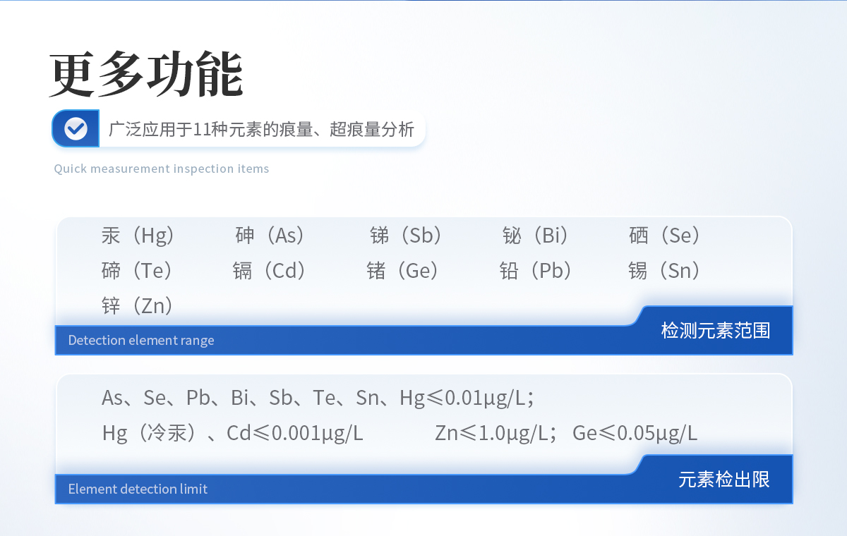 As、Sb、Bi、Hg、Se、Te、Pb、Sn、Ge、Zn、Cd 等 11 種元素。 2、元素檢出限