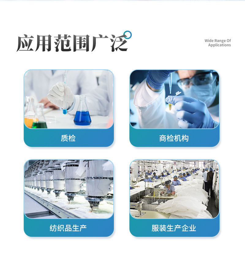 該紡織品甲醛檢測系統(tǒng)與質(zhì)檢、商檢機(jī)構(gòu)采用同樣執(zhí)行標(biāo)準(zhǔn)、檢測方法,專業(yè)為廣大紡織品、服裝等生產(chǎn)企業(yè)、質(zhì)檢商檢單位提供“一站式服務(wù)”,同時為各類紡織品甲醛實驗室提供專業(yè)的解決方案。