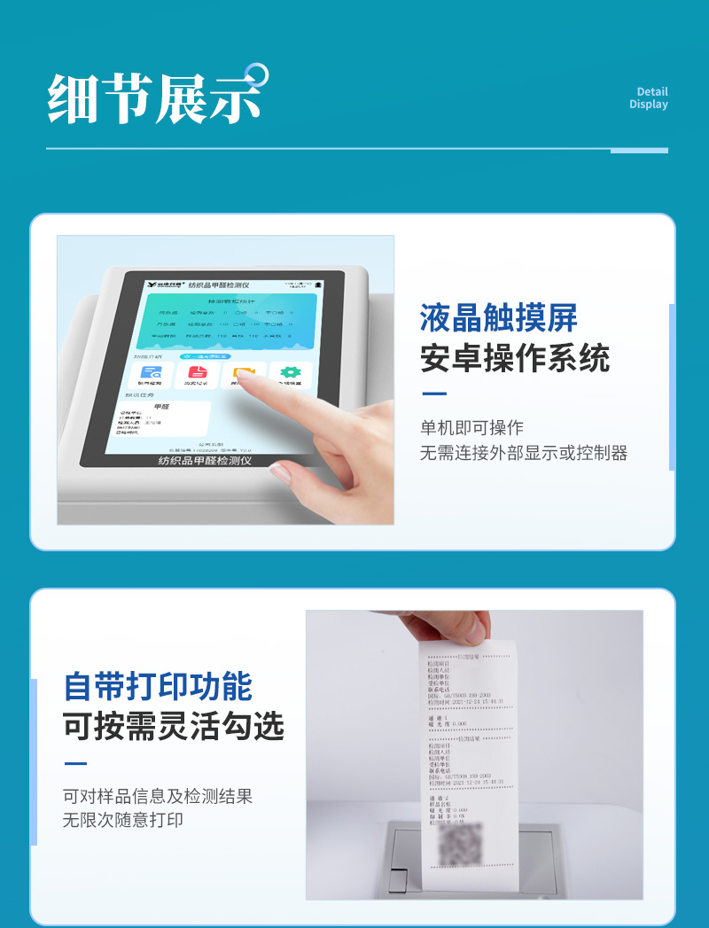 該紡織品甲醛檢測設(shè)備滿足紡織品甲醛含量檢測的中國標(biāo)準(zhǔn)《國家紡織產(chǎn)品基本安全技術(shù)規(guī)范》(GB 18401-2010)、《紡織品.甲醛的測定.第1部分:游離和水解的甲醛(水萃取法)》(GB/T 2912.1-2009), 適合各種紡織品、服裝等的甲醛含量檢測。
