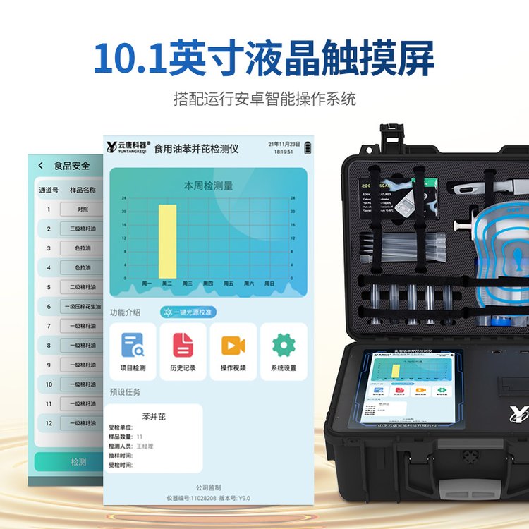 山東云唐智能科技有限公司生產(chǎn)的高智能苯并芘檢測(cè)儀可快速檢測(cè)食用油、芝麻油中的苯并芘含量是否超標(biāo),通過(guò)快速、簡(jiǎn)捷、**的處理方法,采用免疫競(jìng)爭(zhēng)法分析原理,可以確定樣品中是否含有苯并(a)芘,準(zhǔn)確度高,為各行業(yè)的用油安全提供相應(yīng)保障。