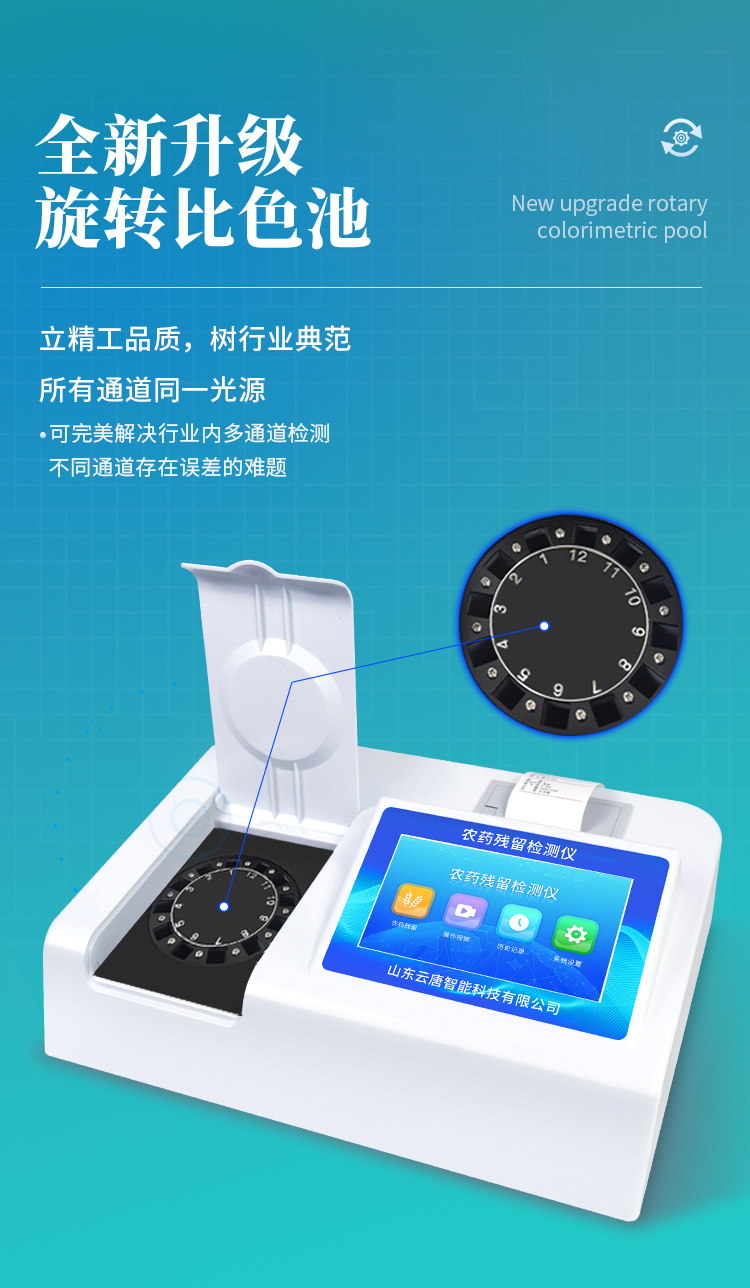 山東云唐智能科技有限公司生產(chǎn)的農(nóng)藥殘留檢測儀廣泛應(yīng)用于主要用于蔬菜、水果、茶葉、糧食、農(nóng)副產(chǎn)品等食品中農(nóng)藥殘留的快速檢測,依據(jù)國標(biāo)GB/T5009.199-2003進行檢測,適用于果蔬茶生產(chǎn)基地以及農(nóng)貿(mào)批發(fā)銷售市場現(xiàn)場檢測,餐館、學(xué)校、食堂、家庭果蔬加工前的安全速測等。