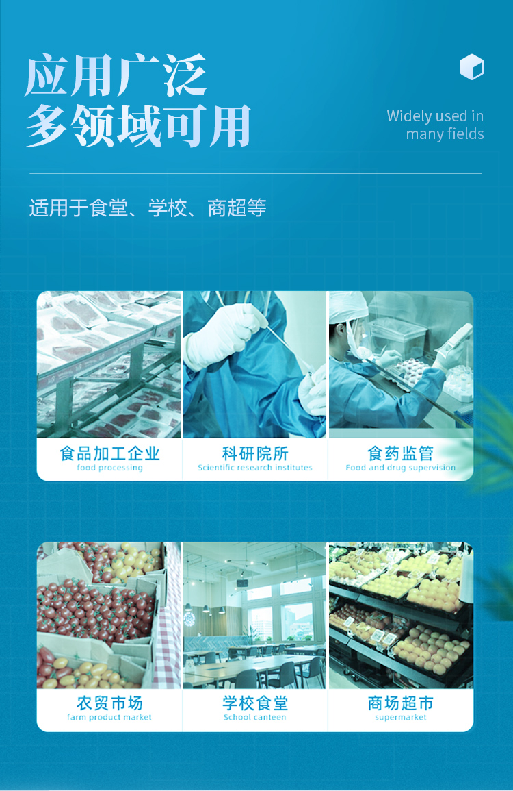 山東云唐智能科技有限公司生產(chǎn)的農(nóng)藥殘留檢測(cè)儀廣泛應(yīng)用于主要用于蔬菜、水果、茶葉、糧食、農(nóng)副產(chǎn)品等食品中農(nóng)藥殘留的快速檢測(cè),依據(jù)國(guó)標(biāo)GB/T5009.199-2003進(jìn)行檢測(cè),適用于果蔬茶生產(chǎn)基地以及農(nóng)貿(mào)批發(fā)銷(xiāo)售市場(chǎng)現(xiàn)場(chǎng)檢測(cè),餐館、學(xué)校、食堂、家庭果蔬加工前的安全速測(cè)等。