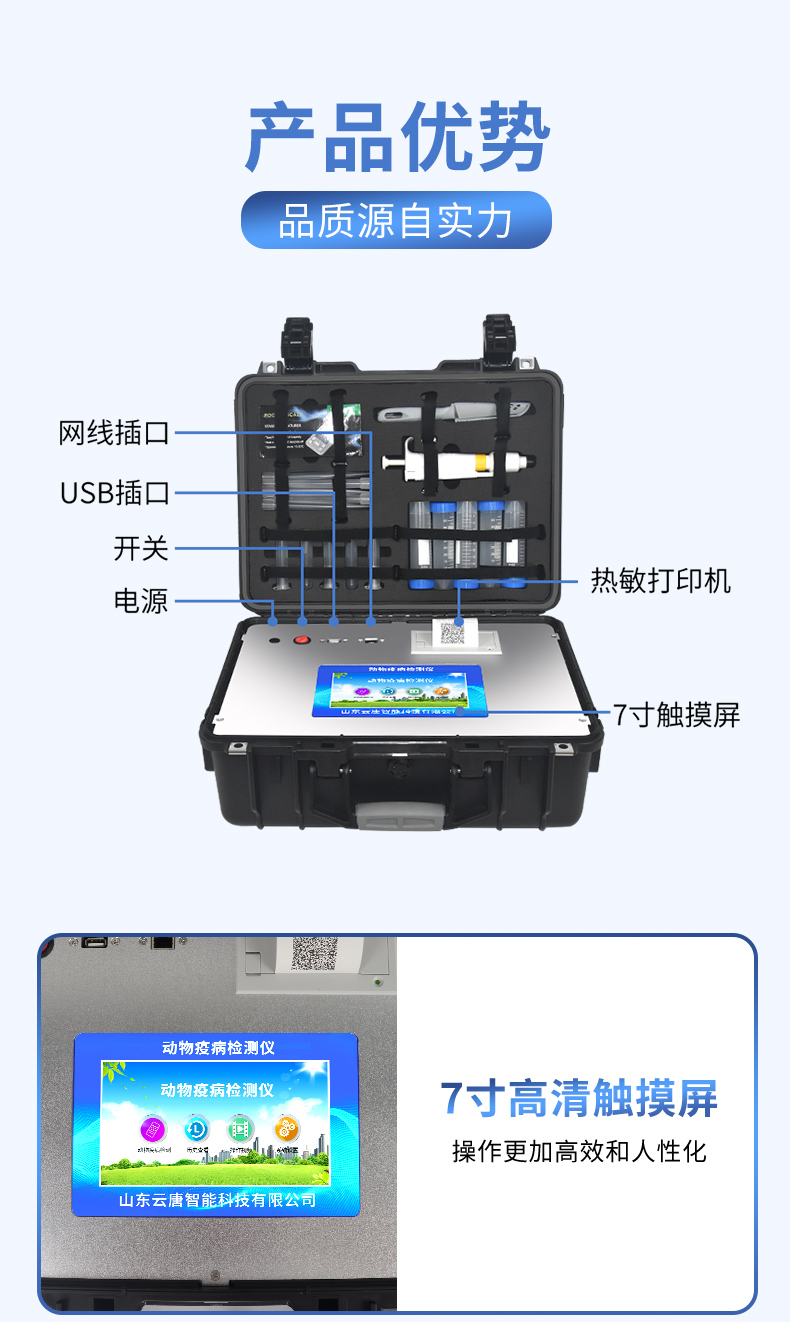 該動物疫病診斷儀適用于豬、雞、鴨、羊、牛、牛奶等畜禽產(chǎn)品中動物疫病、獸藥殘留、有毒有害物質(zhì)和抗生素殘留的檢測可廣泛應(yīng)用于食藥監(jiān)局、衛(wèi)生部門、高教院校、科研院所、農(nóng)業(yè)部門、畜牧獸醫(yī)、養(yǎng)殖場、屠宰場、食品肉產(chǎn)品深加工企業(yè)、檢驗檢疫部門等單位使用。